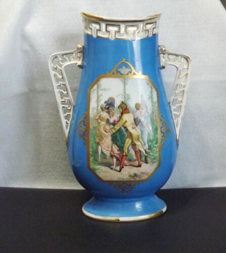 Title (ebay affiliate link): ANTIQUE LARGE VASE ~ Victorian Dance Garden Scene, Gold Trim, 13 3/4 Inches