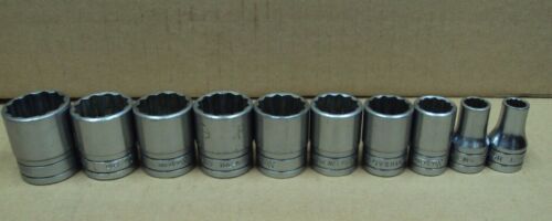 Lot/10 SNAP-ON Tools USA 12 pt 1/2" Drive SHALLOW SOCKETS 1 1/16" - 3/8" SAE