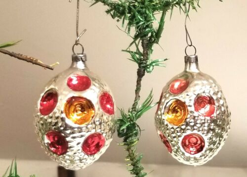 Title (ebay affiliate link): Oval Geometric Pebbled Oval Indents. Two different 1930s German Glass Orn.