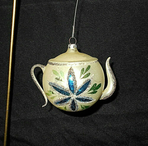 Title (ebay affiliate link): ANTIQUE BLOWN MERCURY GLASS TEAPOT CHRISTMAS ORNAMENT W/MICA MADE IN GERMANY