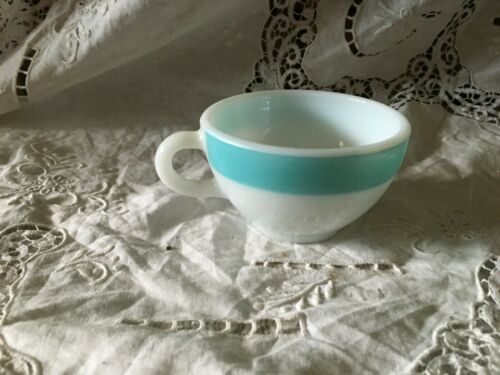 Vtg Corning Milk Glass Turqoise Stripe HTF Blower Coffee Tea Mug