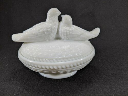 Vintage Westmoreland Lovebird Milk Glass Covered Bowl
