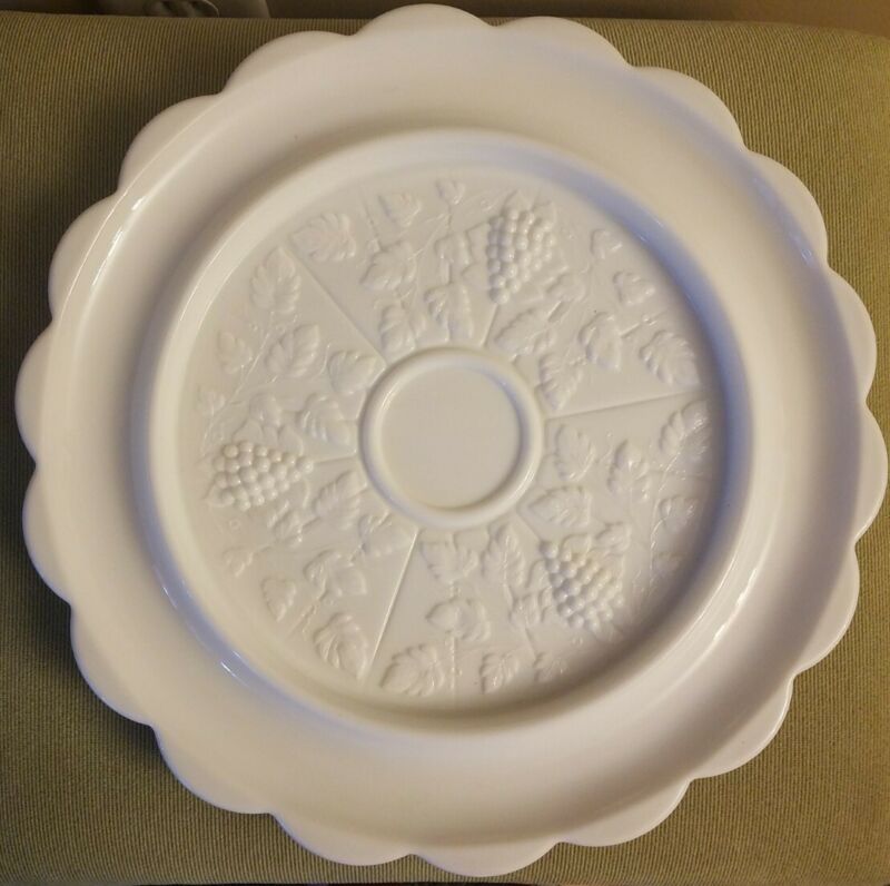Title (ebay affiliate link): VTG Westmoreland Paneled Grape Pattern Milk Glass Canape Platter/Serving Tray