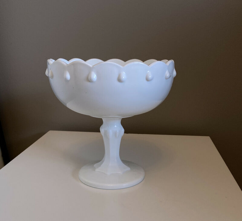 Title (ebay affiliate link): VINTAGE WHITE MILK GLASS FRUIT BOWL WITH PEDESTAL - 7.5" TALL