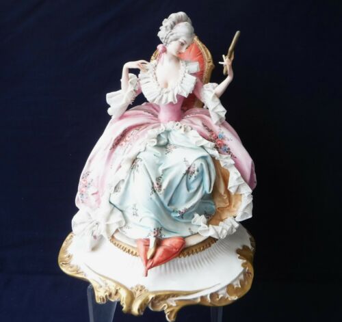 Title (ebay affiliate link): STUNNING CAPODIMONTE LADY WITH MIRROR SIGNED D BELLOIRE DRESSDEN LACE