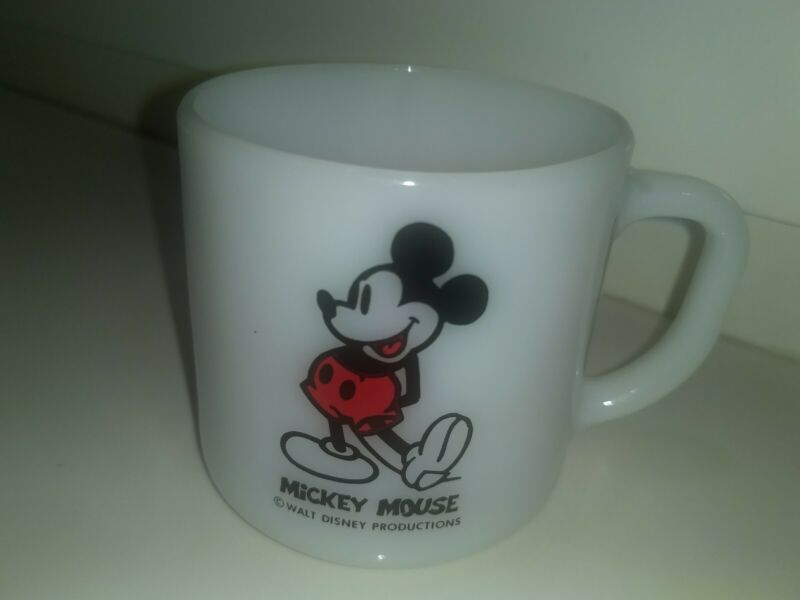 Title (ebay affiliate link): Walt Disney Mickey Mouse White Milk Glass Mug Cup Federal Glass Vintage Retro