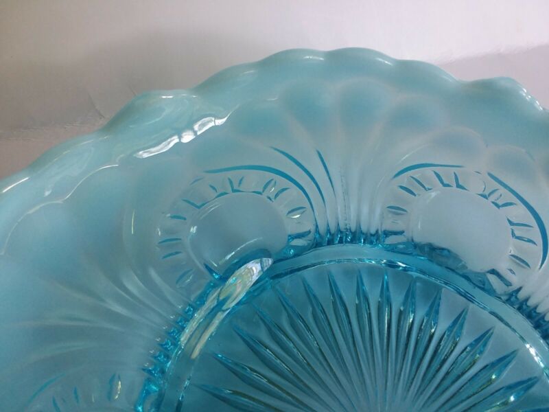 Vintage Blue Opaline Milk Glass, beautiful shell pattern, 8 1/2 " serving dish