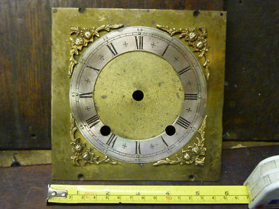 ANTIQUE BRACKET CLOCK 5 3/4" SQUARE BRASS DIAL