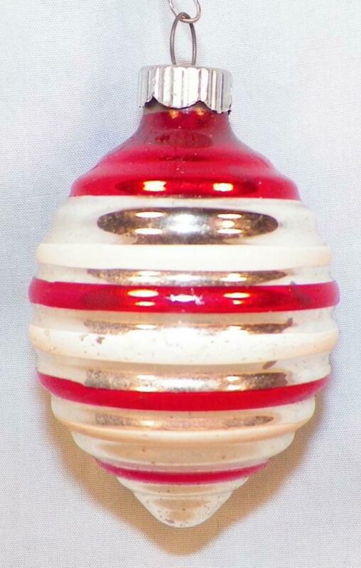 Title (ebay affiliate link): Mercury Glass Christmas Ornament Red White Stripes Shiny Brite Vintage #486
