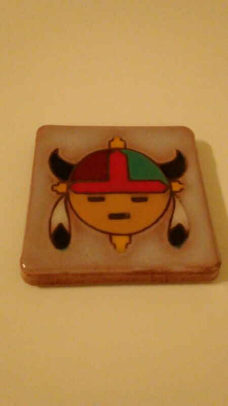 Vintage Rare Tribal Tewa Mask Arius Santa Fe Art Tile 4 Inch Tile