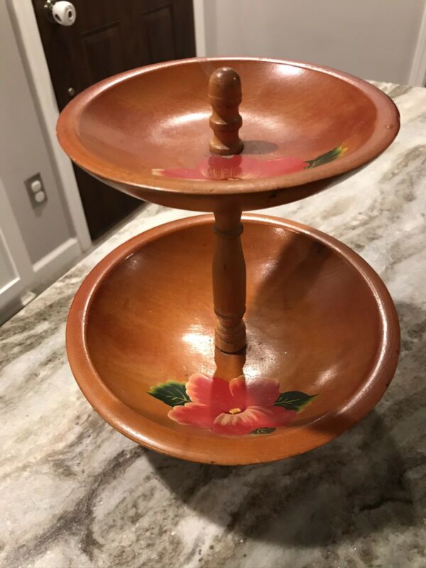 Title (ebay affiliate link): Munising Wood Bowl Primitive Antique Two Tiered Hand Painted Design Rare