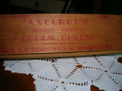 Title (ebay affiliate link): ANTIQUE WOODEN CREAM CHEESE BOX AXELROD''S ENGLEWOOD NEW JERSEY DOVETAILED ENDS