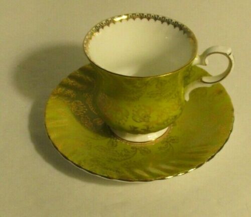 ELIZABETHAN FINE BONE CHINA CUP & SAUCER GREEN / GOLD LEAVES MADE IN ENGLAND