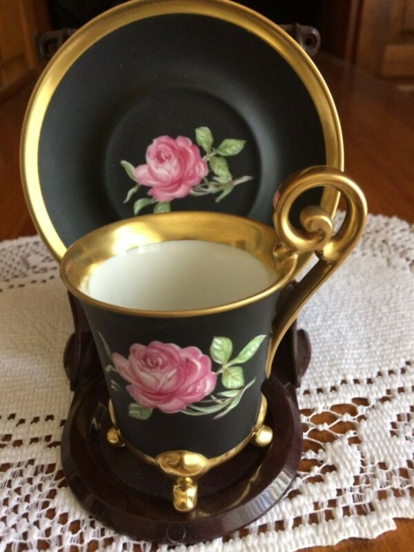 Black Beauty. Hand painted rose, Demitasse cup & saucer.