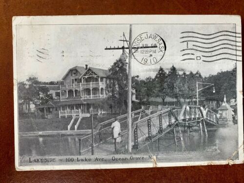 Title (ebay affiliate link): 1910 Postcard THE LAKESIDE, 100 Lake Ave,, OCEAN GROVE NJ showing Iron bridge