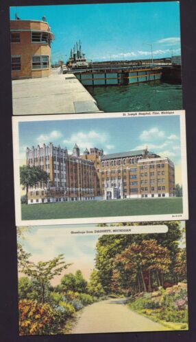 Lot of 3 Old Vintage Postcards Hospital Flint Michigan DAGGETT MI and Lock in NY