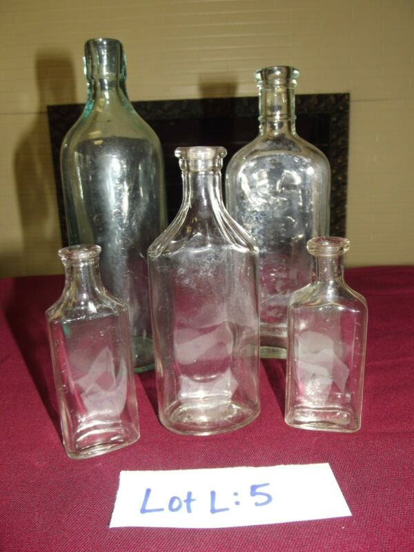 Antique/Vintage Used Lot of 5 Pharmacy/Medicine Bottles; "Rawleighs" Bottle-L