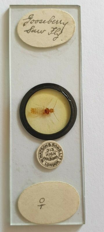 Title (ebay affiliate link): VERY FINE ANTIQUE WHOLE INSECT MICROSCOPE SLIDE "GOOSEBERRY SAW FLY" BY WHEELER