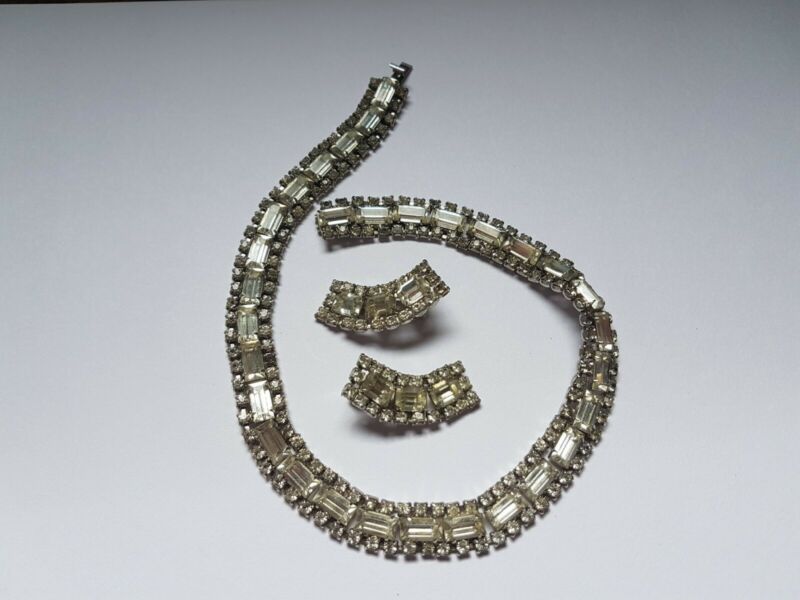 Title (ebay affiliate link): Vintage costume jewellery stunning silver and Diamond effect choker necklace and