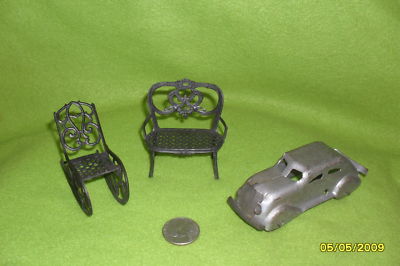 Antique 1920-1930 Brass Dollhouse Furniture &Metal Car