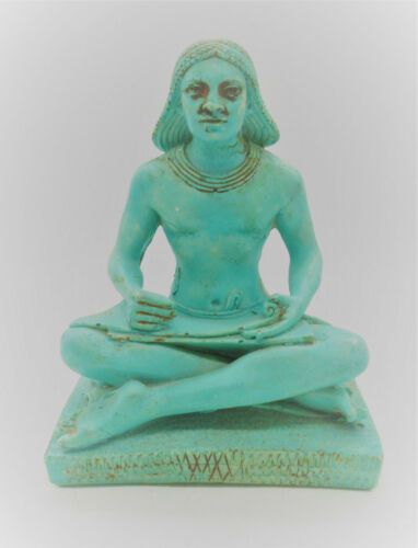 Title (ebay affiliate link): BEAUTIFUL VINTAGE EGYPTIAN GLAZED STONE SEATED SERVANT FIGURINE