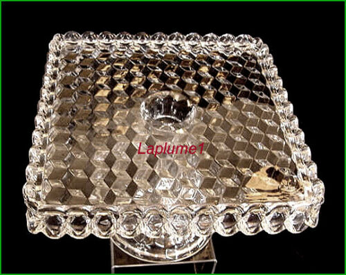 BEAUTIFUL AMERICAN FOSTORIA GLASS SQUARE PEDESTAL CAKE PLATE STAND w/RUM WELL!