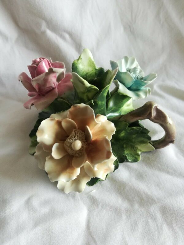Title (ebay affiliate link): Vintage Capodimonte Visconti Mollica Flower Rose Candle Holder With Handle Italy
