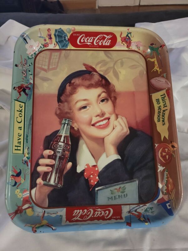 Title (ebay affiliate link): NICE VINTAGE COCA COLA METAL TRAY BEAUTIFUL BRIGHT COLORS