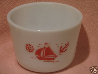 Vintage Mckee Milk Glass Bowl With Red Ship Design