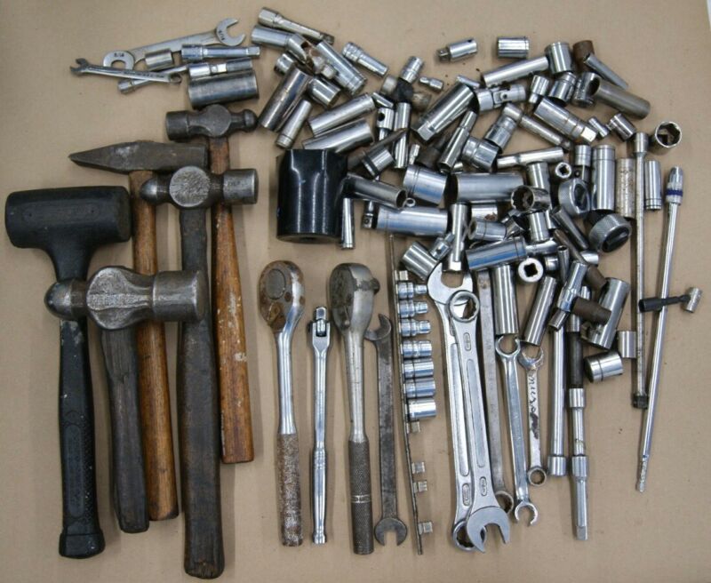 Title (ebay affiliate link): Lot VINTAGE Mechanic Tools, ratchets, sockets, ball peen hammers + L-3107