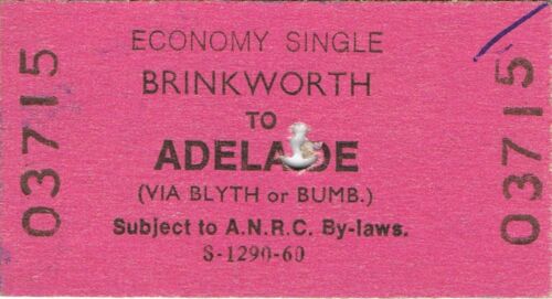 Title (ebay affiliate link): Railway tickets ANR ANRC Brinkworth to Adelaide economy single 1980