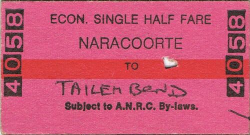 Railway tickets ANR ANRC Naracoorte to Tailem Bend half fare economy single 1989
