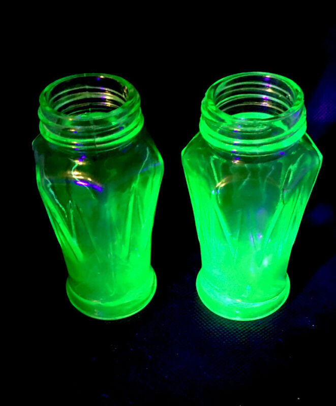 Title (ebay affiliate link): Green Depression Glass ~ Hazel Atlas ~Salt Pepper Shakers~Uranium Vaseline Glass
