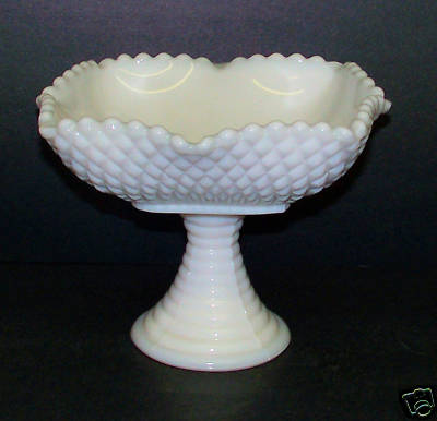 WESTMORELAND ENGLISH HOBNAIL MILK GLASS FOOTED COMPOTE
