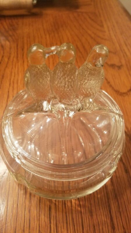 Title (ebay affiliate link): Depression Era Puff/Powder Box Clear Glass Three Penguins