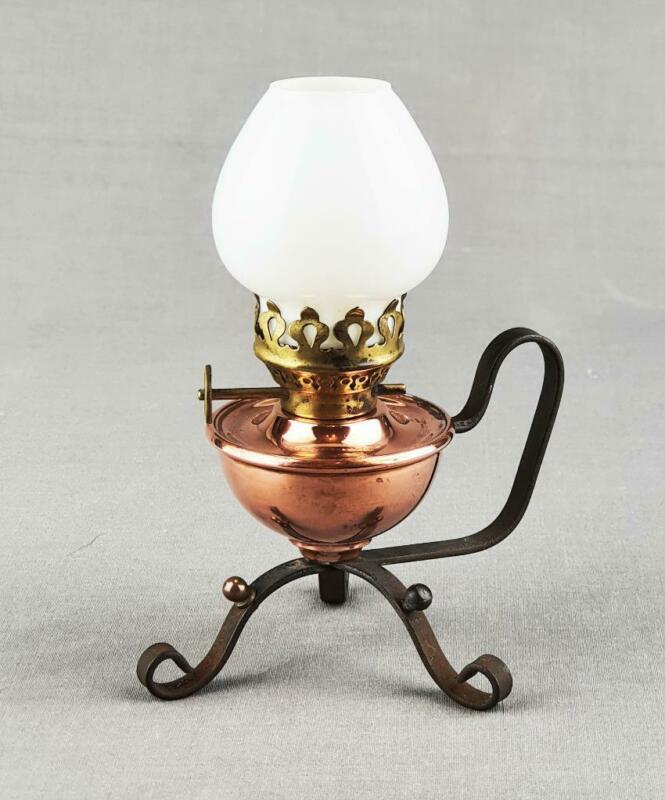 Title (ebay affiliate link): Victorian Art & Crafts Kerosene Paraffin Oil Lamp Opal Shade Miniature Small