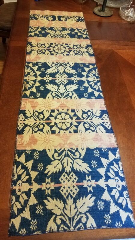 Primitive Early Antique Coverlet Runner 1836 AAFA 49" L Original Serged