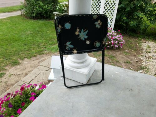 Title (ebay affiliate link): one vtg turquoise leaves TV Tray table w/ black Metal Legs retro Cal Dak ? t.v.