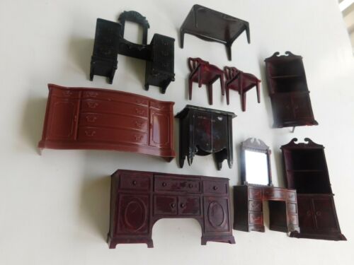 10 PCS VTG 1950s BROWN PLASTIC DOLLHOUSE FURNITURE MARX RENWAL IDEAL PLASCO TOY