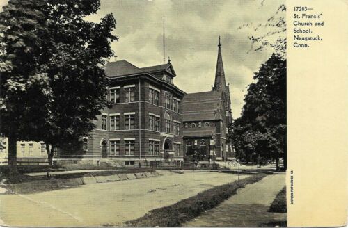 Title (ebay affiliate link): UDB postcard c1907, St. Francis Church and school, Naugatuck, CT