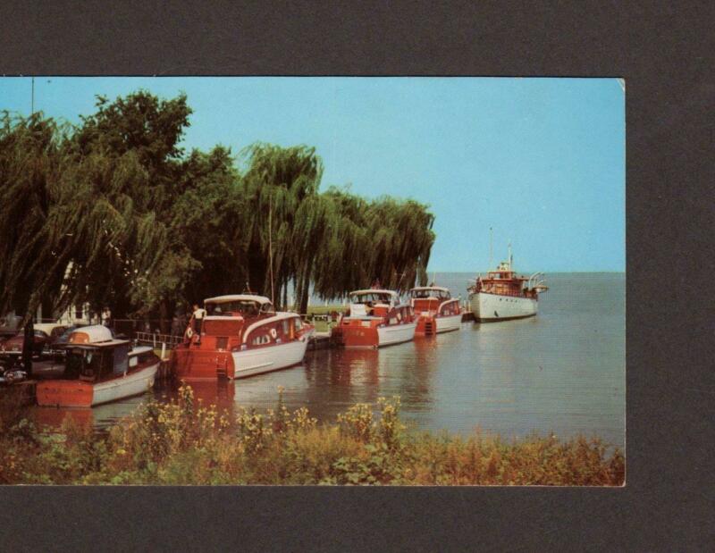 VINTAGE POSTCARD OF WOODEN PLEASURE YACHTS MOORED ON LAKE ERIE, OHIO