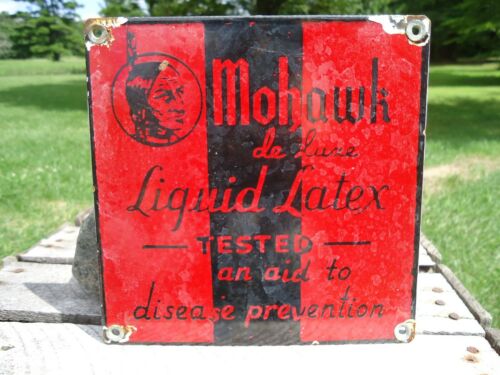 VINTAGE 1950S MOHAWK LIQUID LATEX PORCELAIN ENAMEL GAS PUMP SIGN INDIAN CHIEF