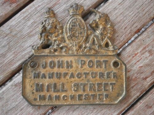 ANTIQUE VINTAGE BRASS SIGN SIGNBOARD FACIA JOHN PORT MANIFACTURER MANCHESTER