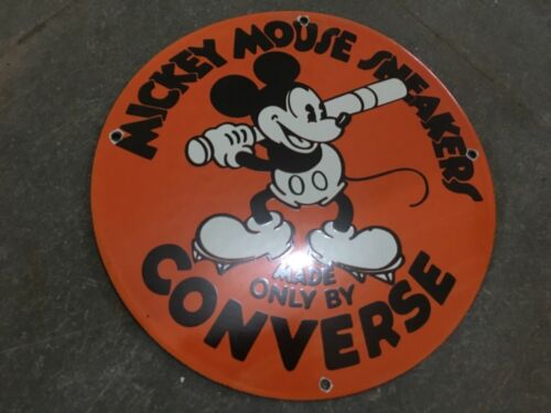 Title (ebay affiliate link): Porcelain Mickey Mouse Snekers only by CONVERSE enamel sign 12 inches round