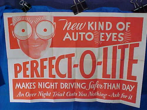 Title (ebay affiliate link): Orig 1920s AUTOMOBILE Perfect O Lite HEADLIGHTS Store ADVERTISING POSTER 19 x 12