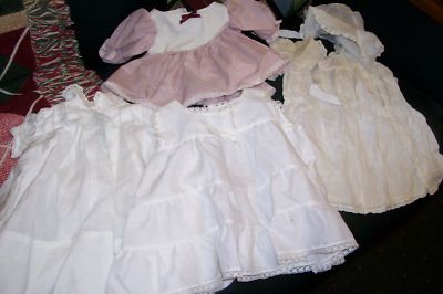 Lot of 5 Vintage Antique Doll Dresses Hat