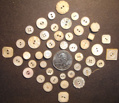 45 Vintage Antique Buttons Carved Dimi Tiny MOP Dolls
