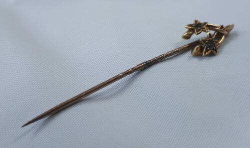 Antique c1880 Mens Victorian 15 Carat & Diamond Wishbone Tie Pin. Wedding Groom