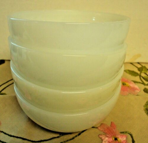 4 FIRE-KING OFF WHITE MILK GLASS 5" CEREAL SOUP BOWLS OVEN WARE MADE IN USA