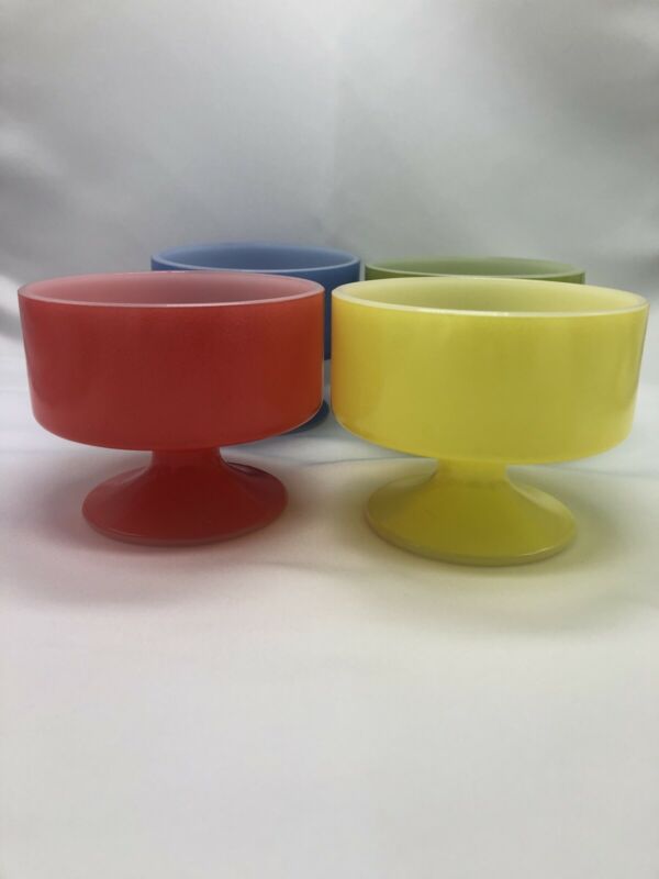 Title (ebay affiliate link): Vintage Set Of 4 Federal Glass Heat Proof Milk Glass Enameled Desert Bowls